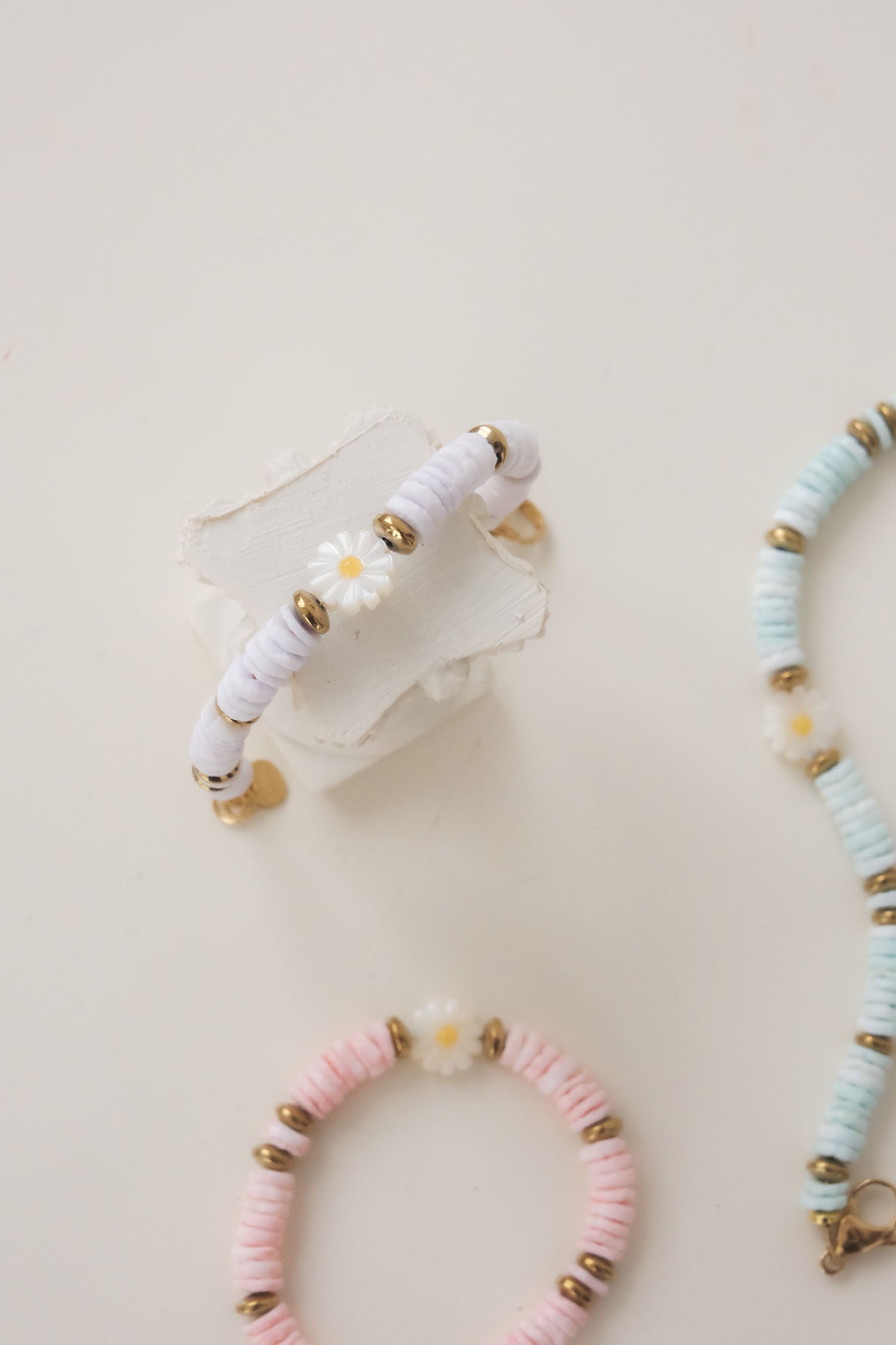 Each part in this exquisite bracelet is meticulously crafted to resemble a daisy in full bloom, radiating positivity and freshness. The dainty shell are strung together with precision, creating a graceful and lightweight bracelet that is perfect for everyday wear or special occasions.