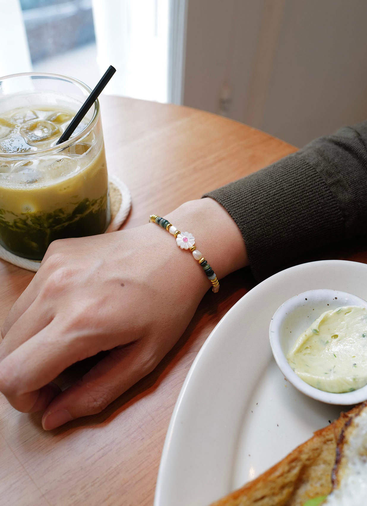 Crafted with durable stainless steel accents, this bracelet is designed to endure while maintaining its timeless appeal. Perfect for any occasion, its soothing tones and delicate charm make it a versatile addition to your jewelry collection. Wear it solo for effortless grace or layer it for a personalized, curated look.