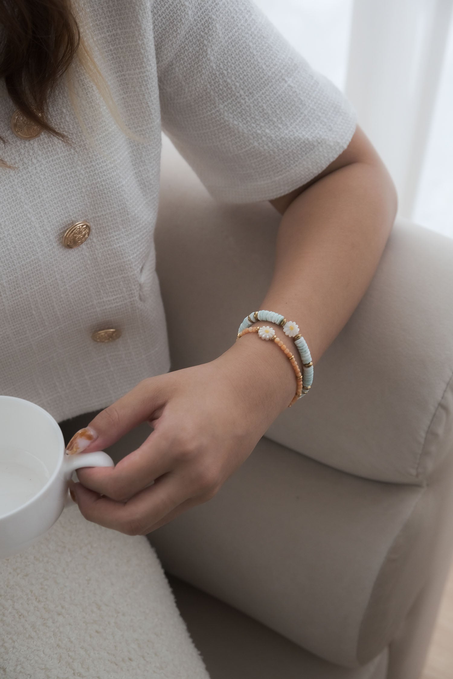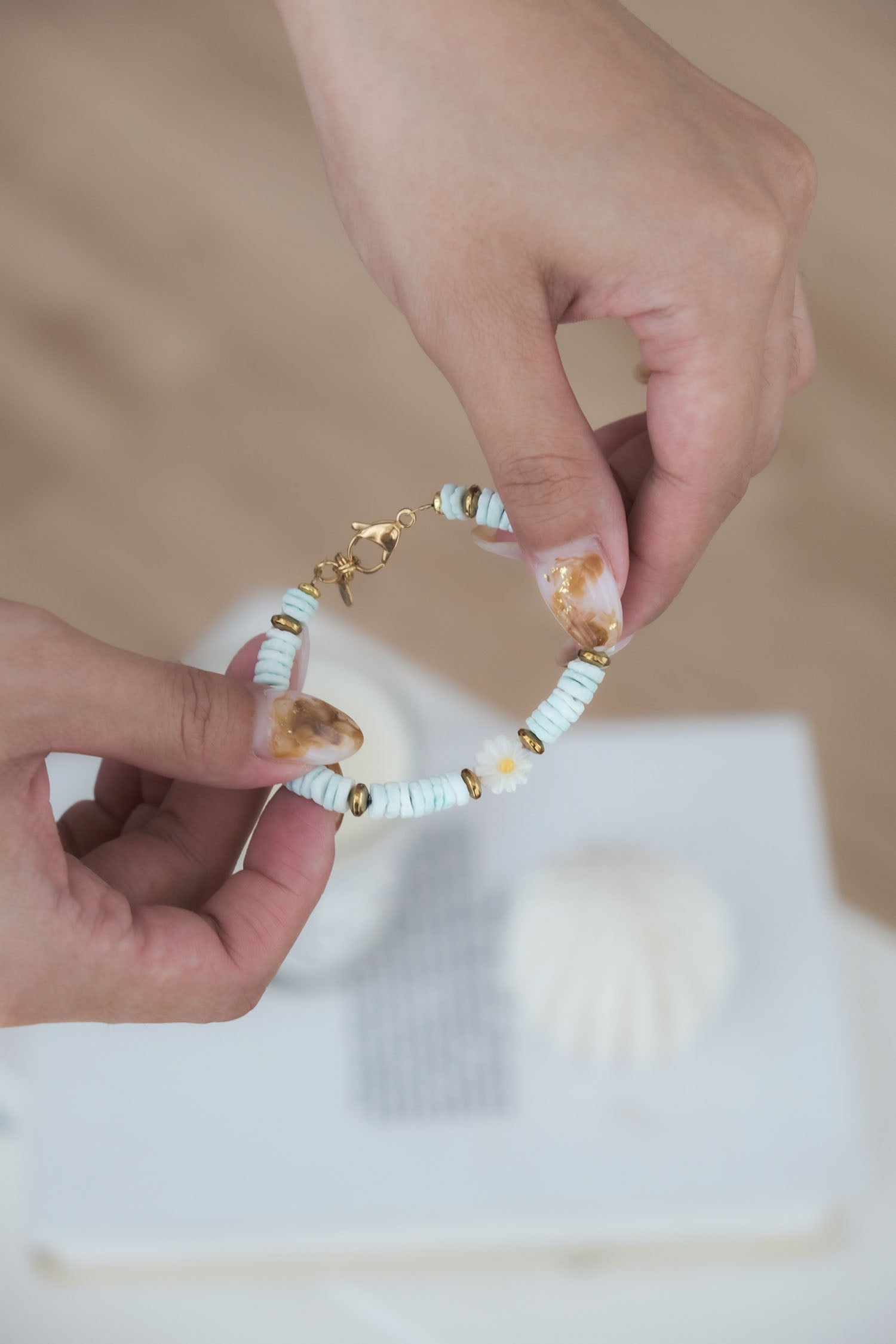 Each part in this exquisite bracelet is meticulously crafted to resemble a daisy in full bloom, radiating positivity and freshness. The dainty shell are strung together with precision, creating a graceful and lightweight bracelet that is perfect for everyday wear or special occasions.