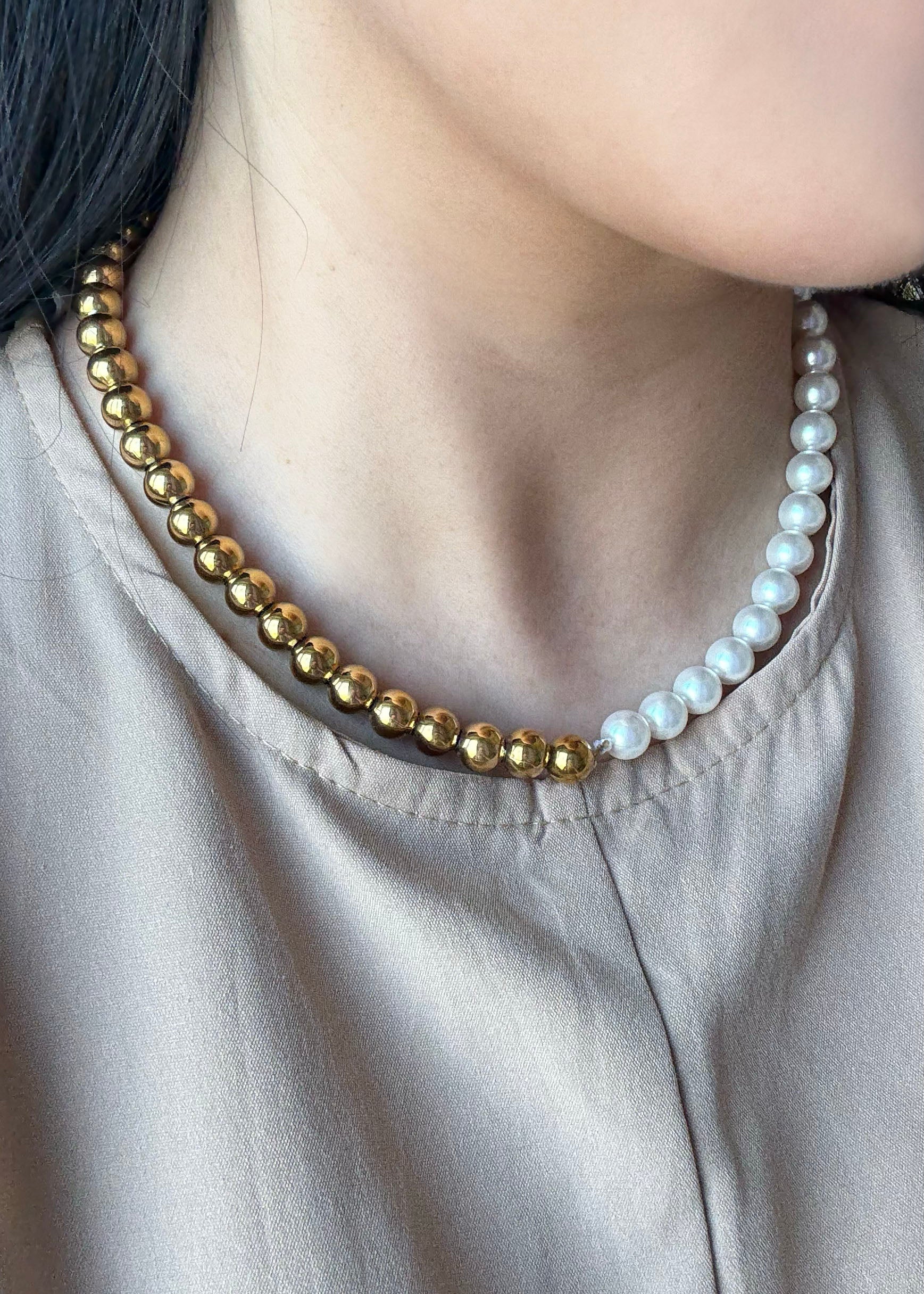 Aurora Orbs Pearl Necklace (Gold)