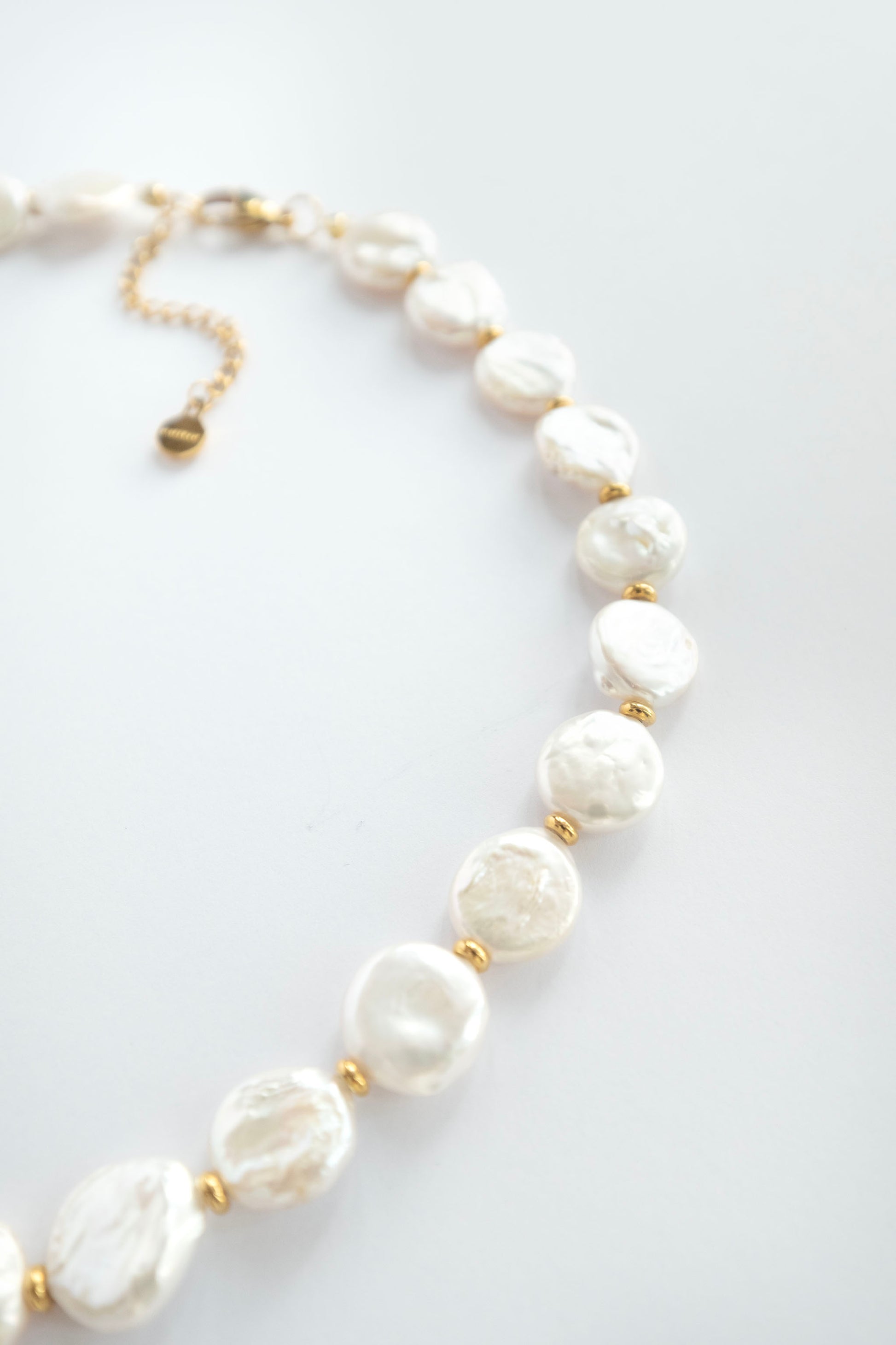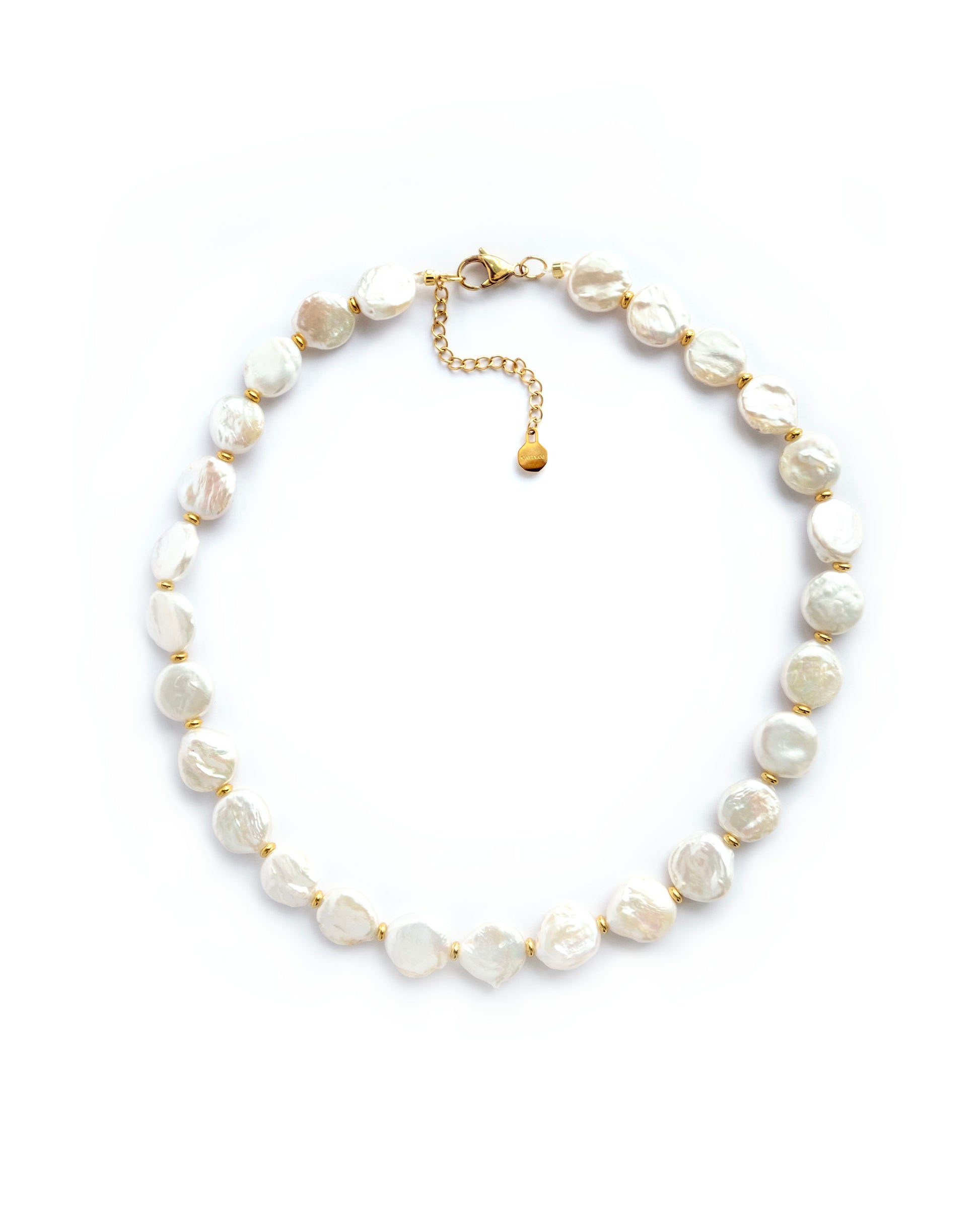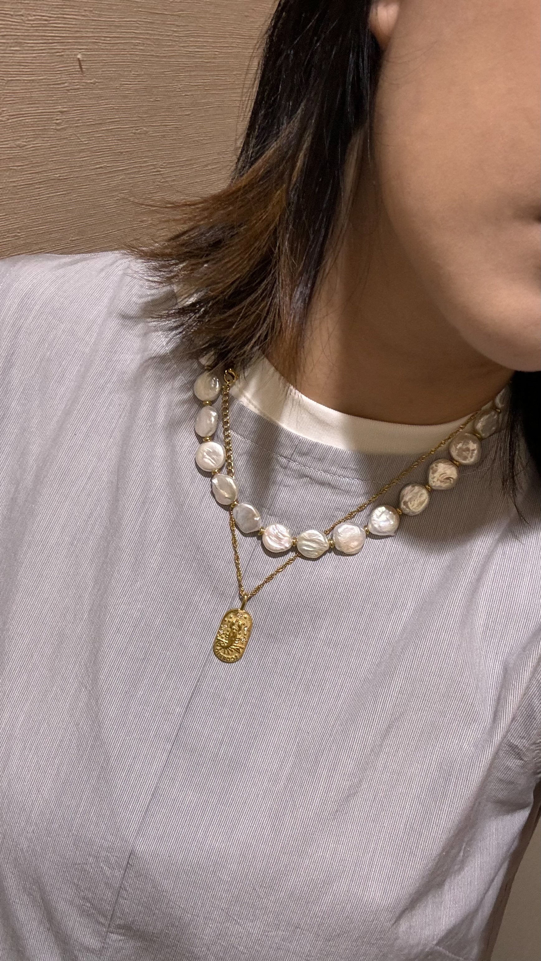 A timeless blend of classic and contemporary — the Baroque Button Pearls Necklace features handpicked baroque freshwater pearls, each one naturally unique in shape and luster. Thoughtfully handcrafted with durable stainless steel and gold-plated components, this piece is made to last.