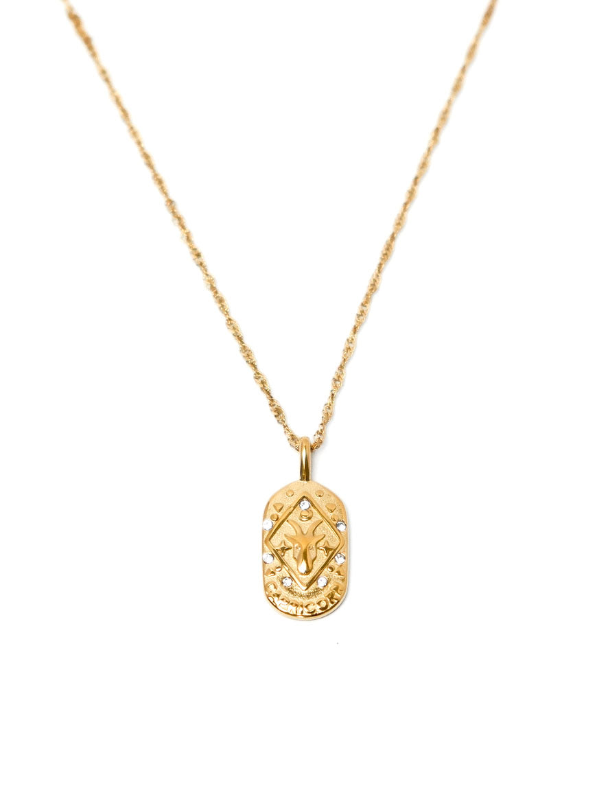 Honor the ambitious and disciplined energy of Capricorn with this exquisite gold pendant. Showcasing the Capricorn symbol, this timeless piece represents determination, wisdom, and perseverance. The sleek gold finish adds a refined touch, making it an ideal accessory for both everyday wear and formal occasions. Whether you're a Capricorn or admire its hardworking nature, this pendant is a perfect tribute to resilience and success.