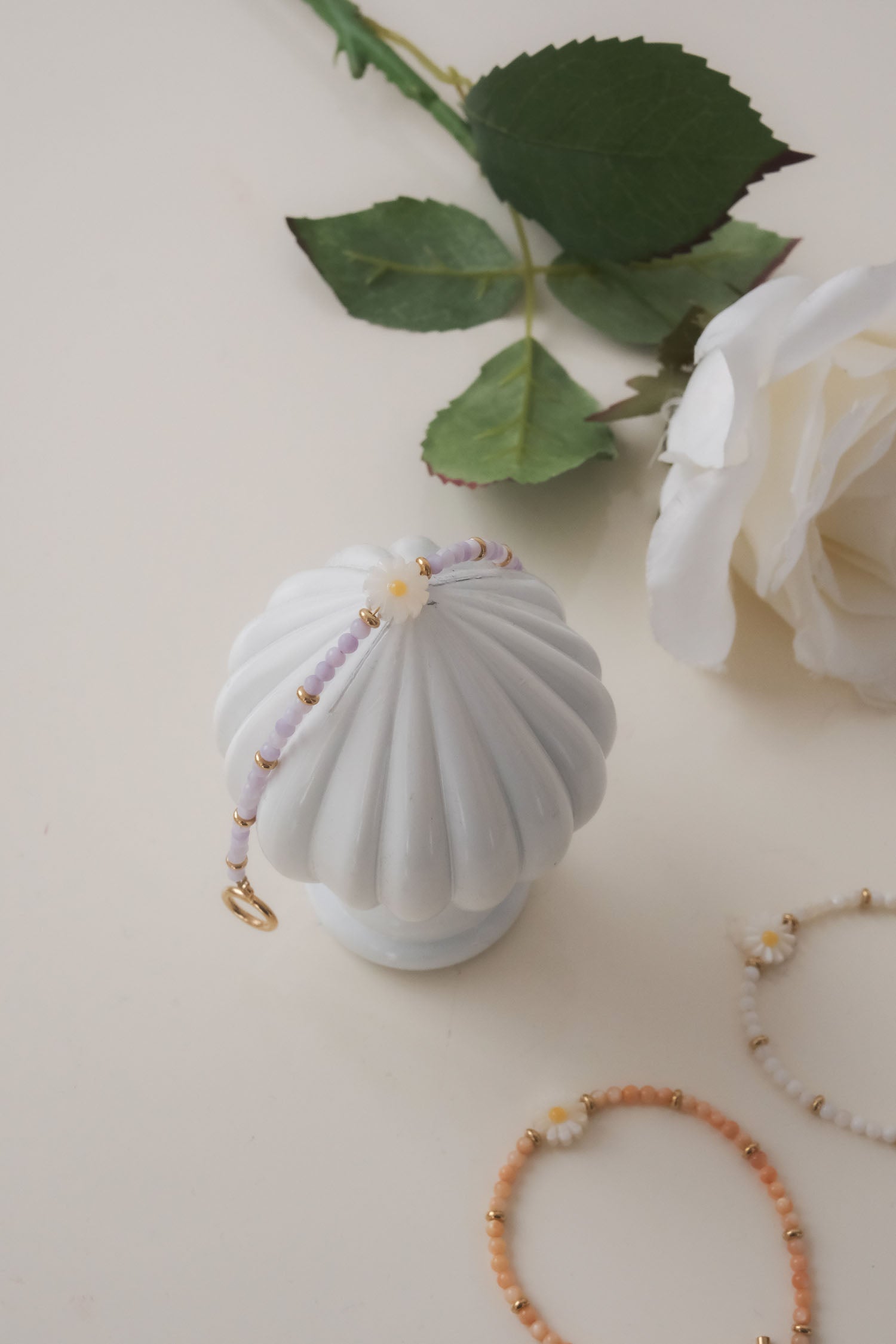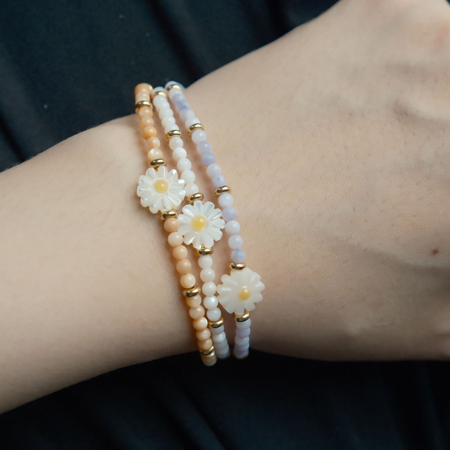 Each bead in this exquisite bracelet is meticulously crafted to resemble a daisy in full bloom, radiating positivity and freshness. The dainty beads are strung together with precision, creating a graceful and lightweight bracelet that is perfect for everyday wear or special occasions.