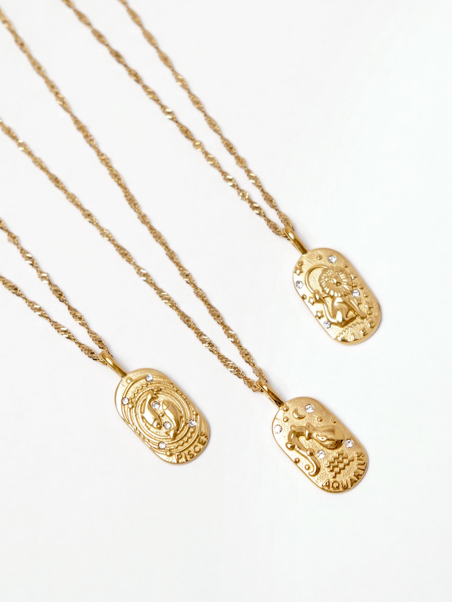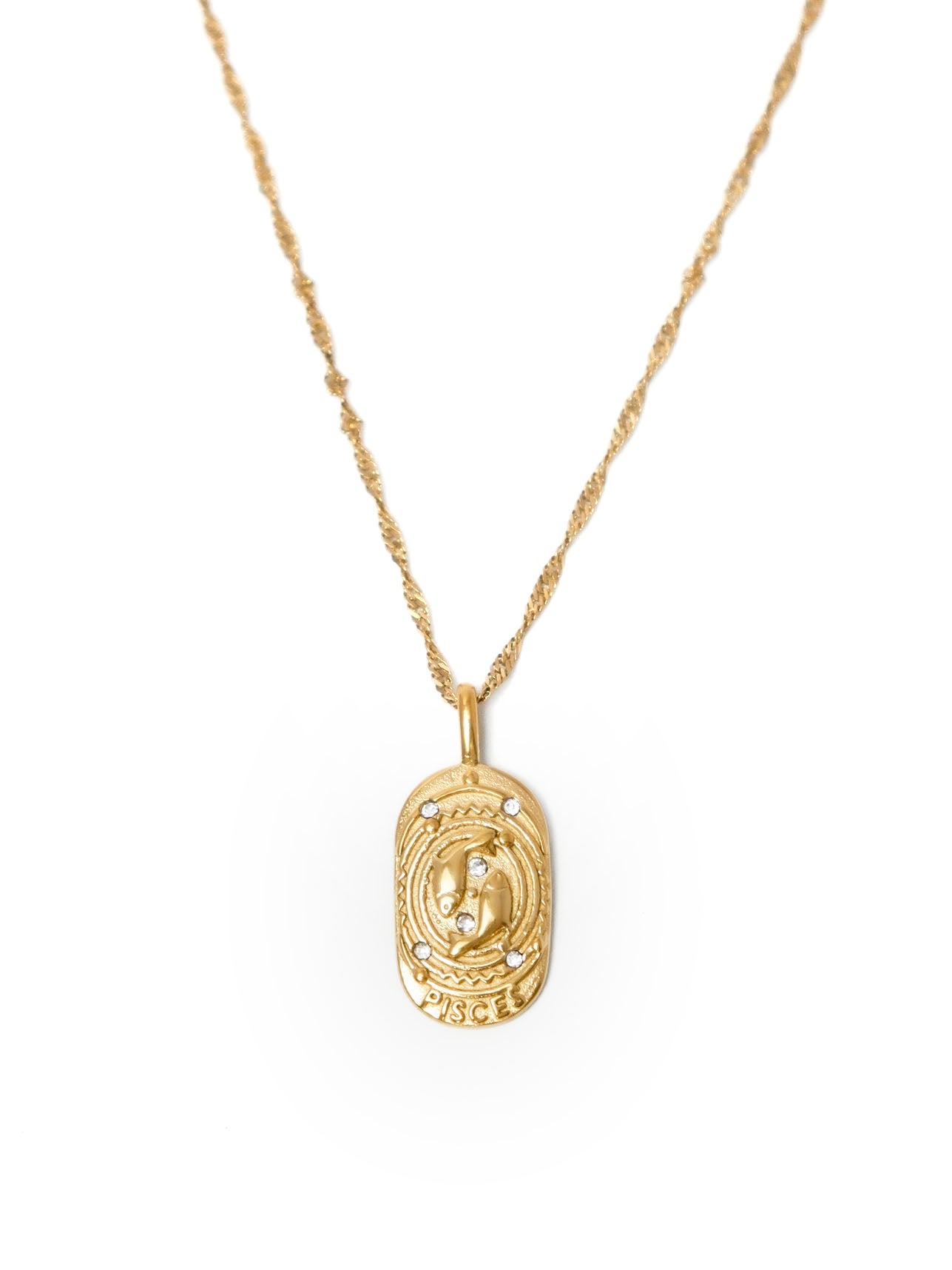 Celebrate the intuitive and empathetic spirit of Pisces with this elegant gold pendant. Featuring the distinctive Pisces symbol, this piece embodies creativity, compassion, and a deep emotional connection. The luxurious gold finish adds a touch of sophistication, making it a versatile accessory for any occasion. Whether you're a Pisces or captivated by its dreamy, nurturing nature, this pendant is a beautiful tribute to the qualities that make each individual unique. Wear it as a personal symbol or a meaningful gift for someone special.